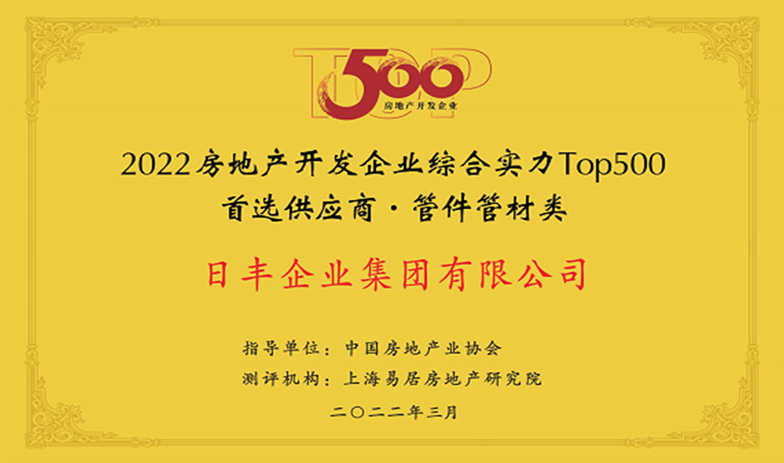 日丰集团入选综合实力TOP500管材管件类首选供应商